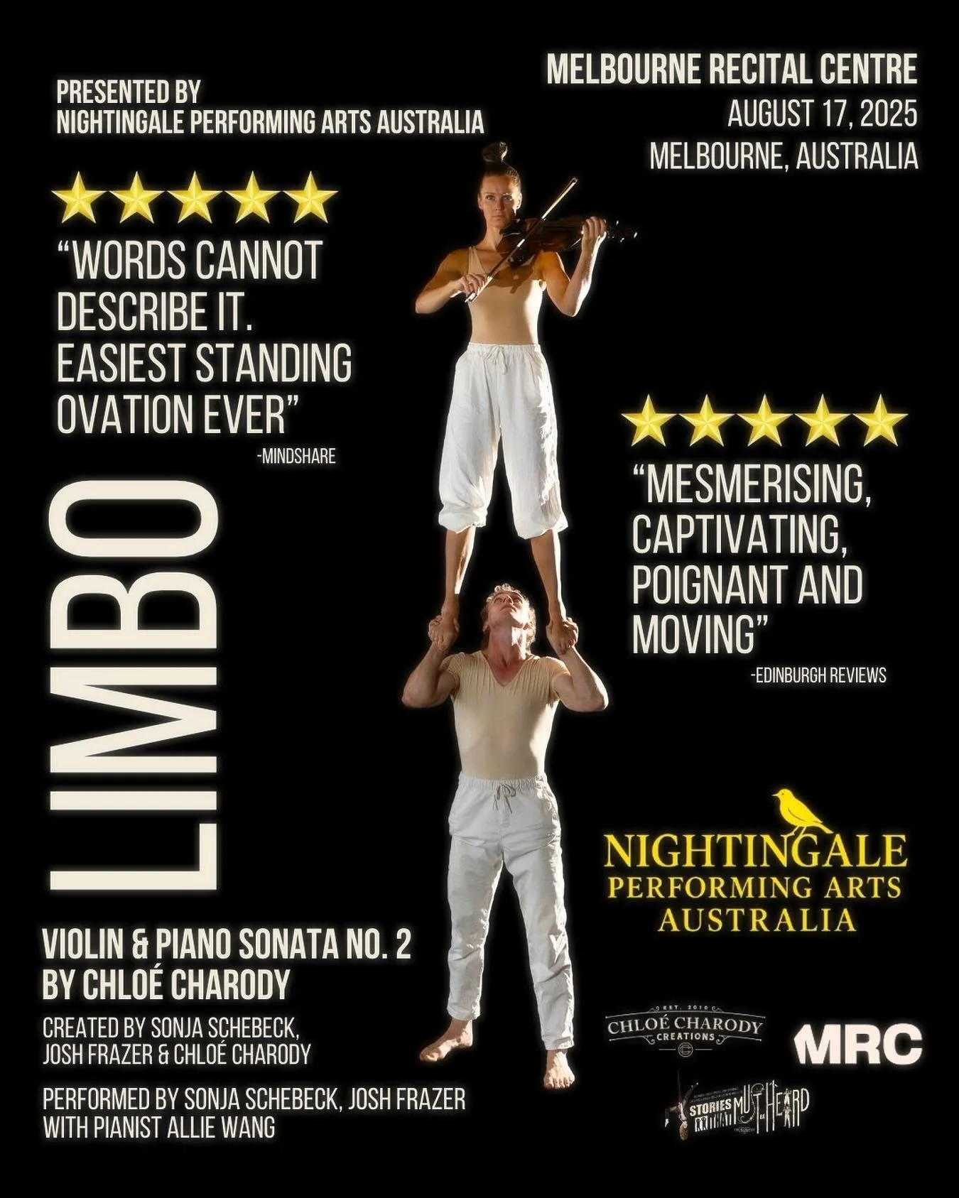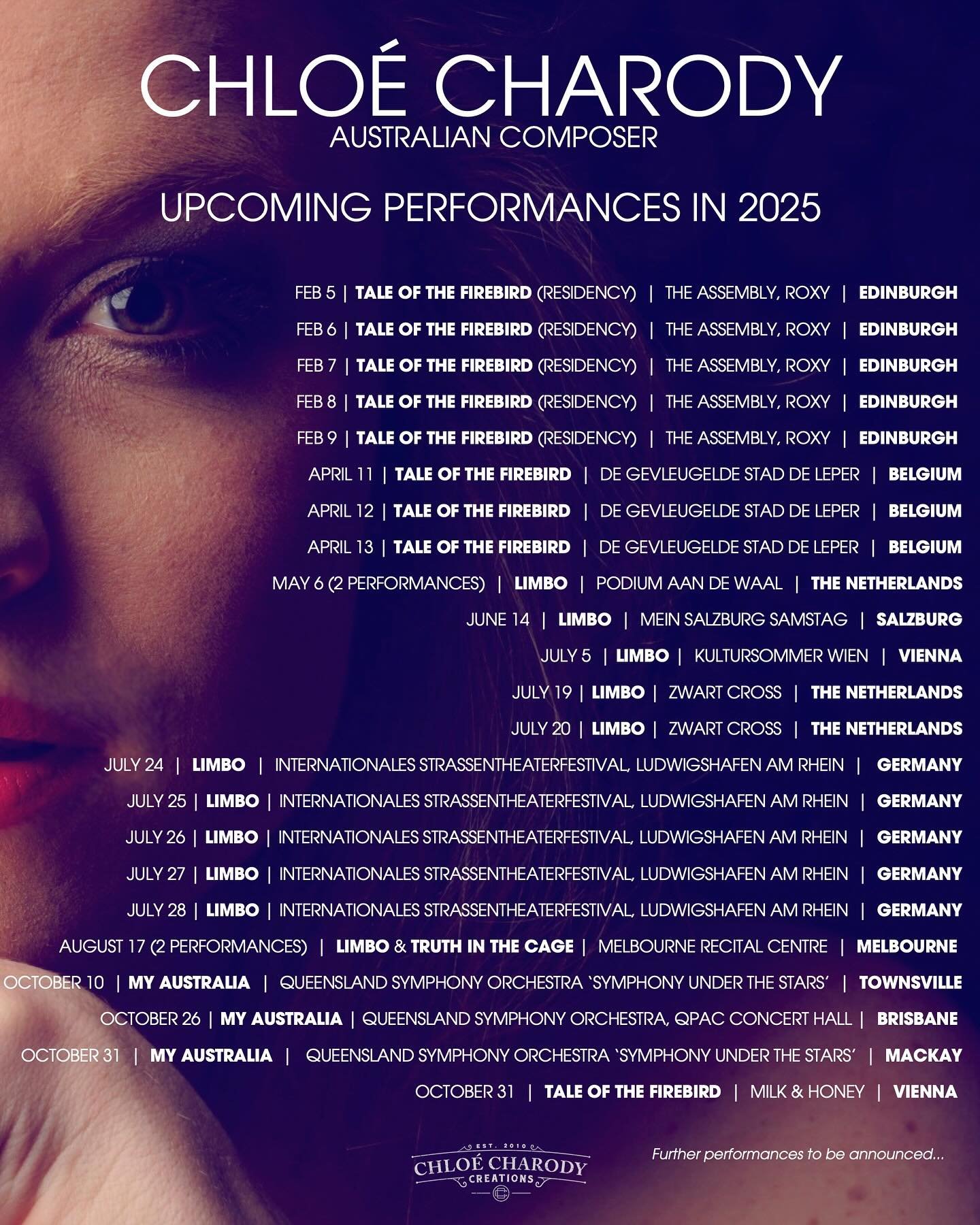 'The Phoenix’ is a violin caprice composed by Chloé Charody in 2011 for violinist Sonja Schebeck. The work was first premiered by Ms Schebeck at the Musikverein in Vienna in May 2012. The work since went on to feature in Charody’s circus opera ‘The Carnival’. In 2016 choreographer and world renowned ballet dancer Remi Wortmeyer turned ‘The Phoenix’ into a ballet for solo dancer and violinist, featuring dancer Joey Masserelli and violinist Sonja Schebeck. The ballet was premiered on June 24 2016 by The Dutch National Ballet.